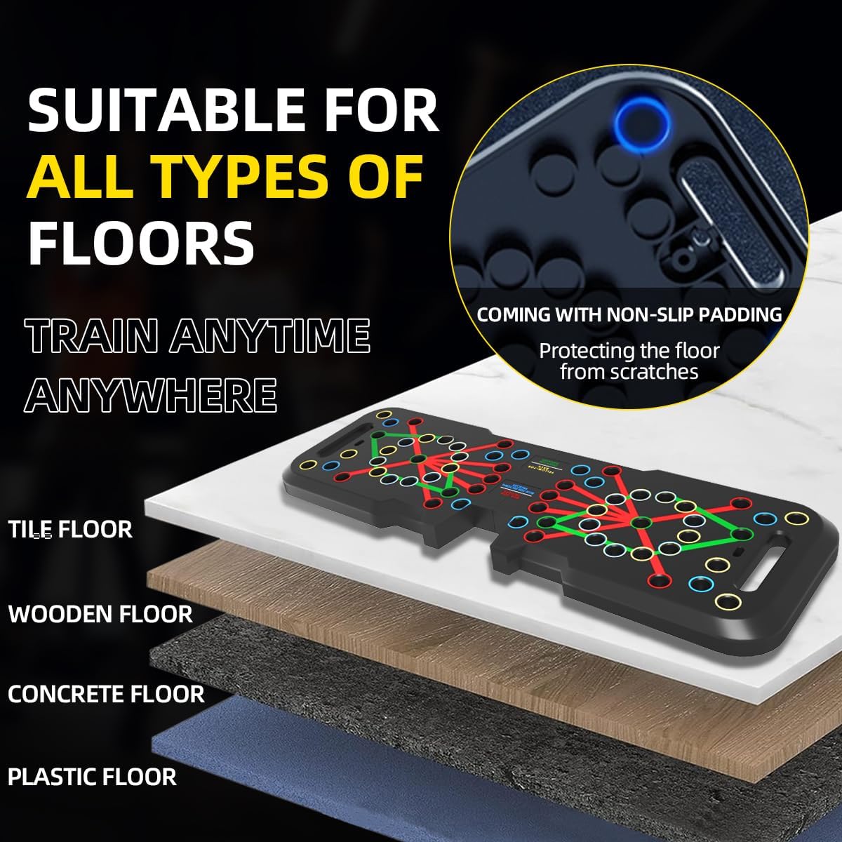 - VERSATILE DESIGN: Exercise board with multiple positions marked for different types of pushups and strength exercises for chest and arms