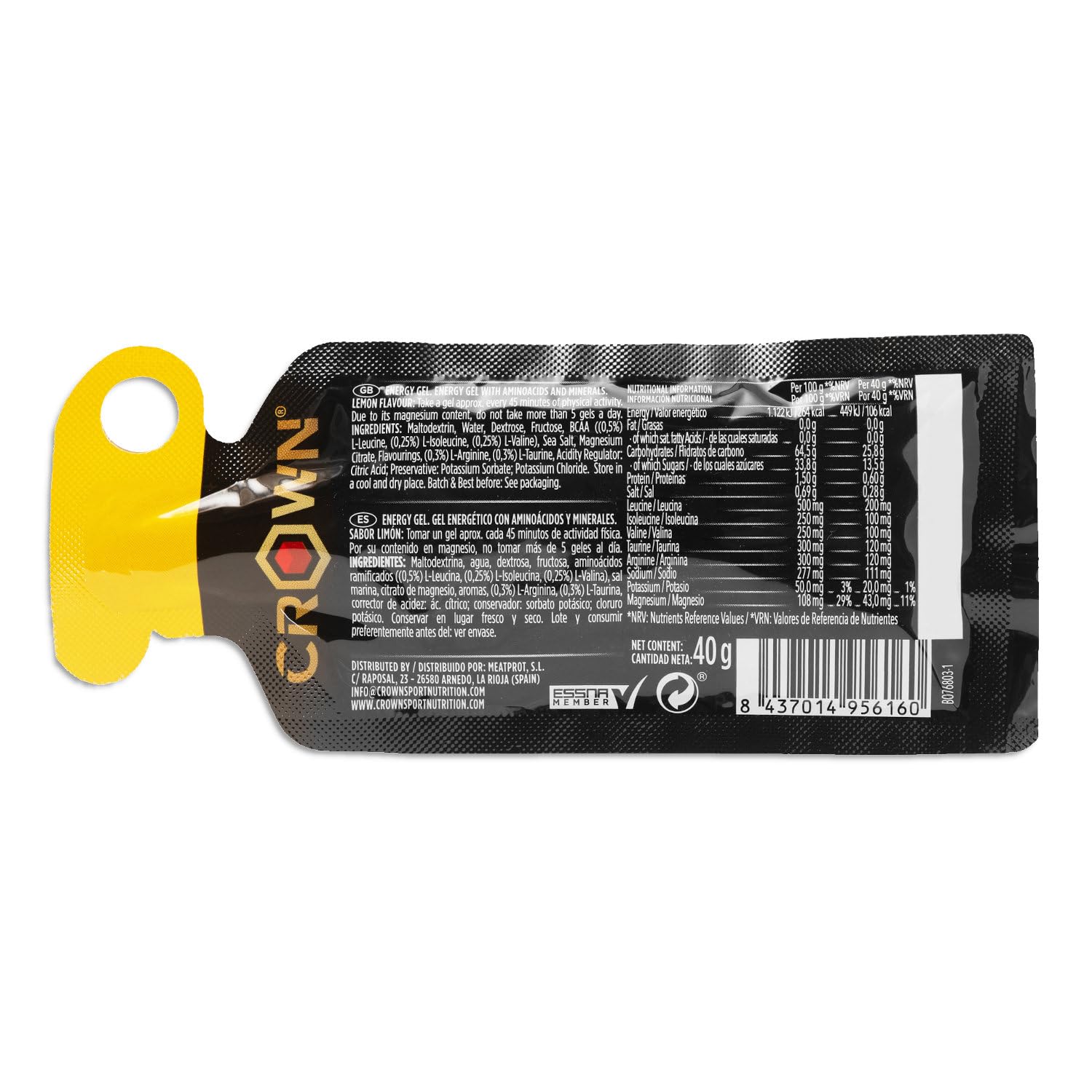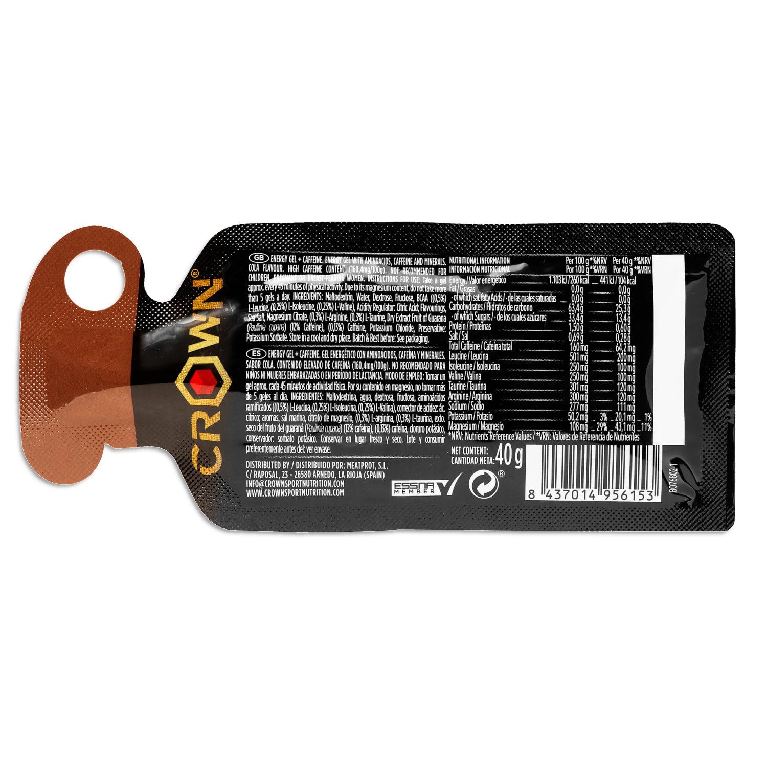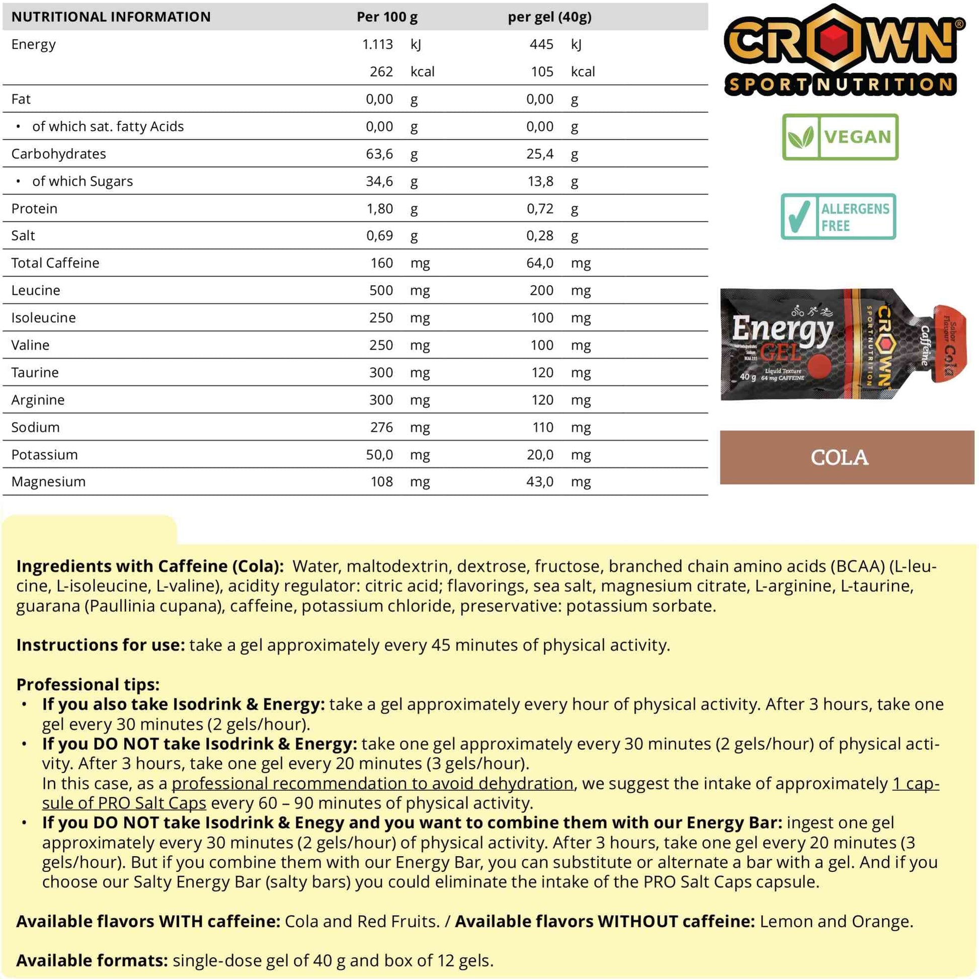Crown Sport Nutrition Energy Gel | Carbs + BCAA, Arginine, Taurine & Electrolytes | Liquid Texture, Caffeinated & Free | Vegan | Allergen Free